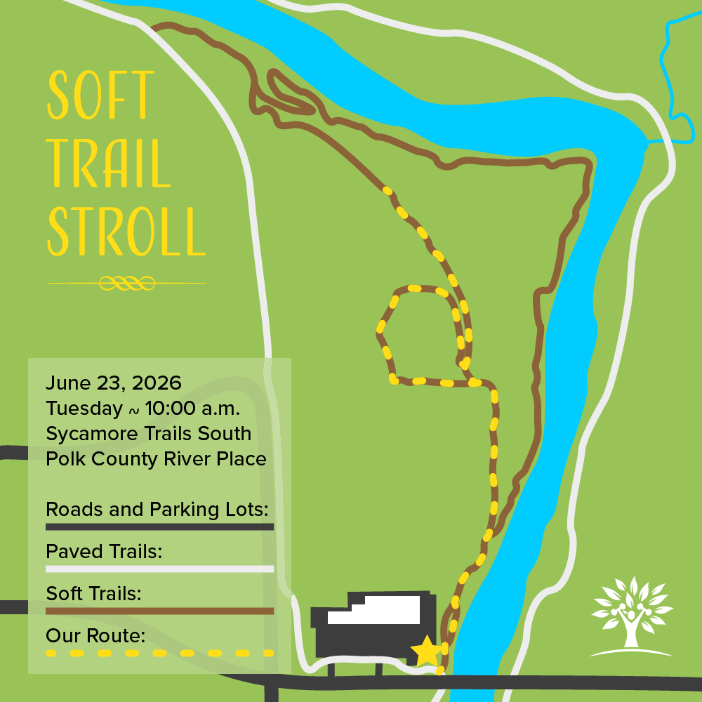 If the dirt trails are not usable, we will walk the paved trail instead. Regardless, we will walk slowly, think “stroll,” and no one will be left behind.